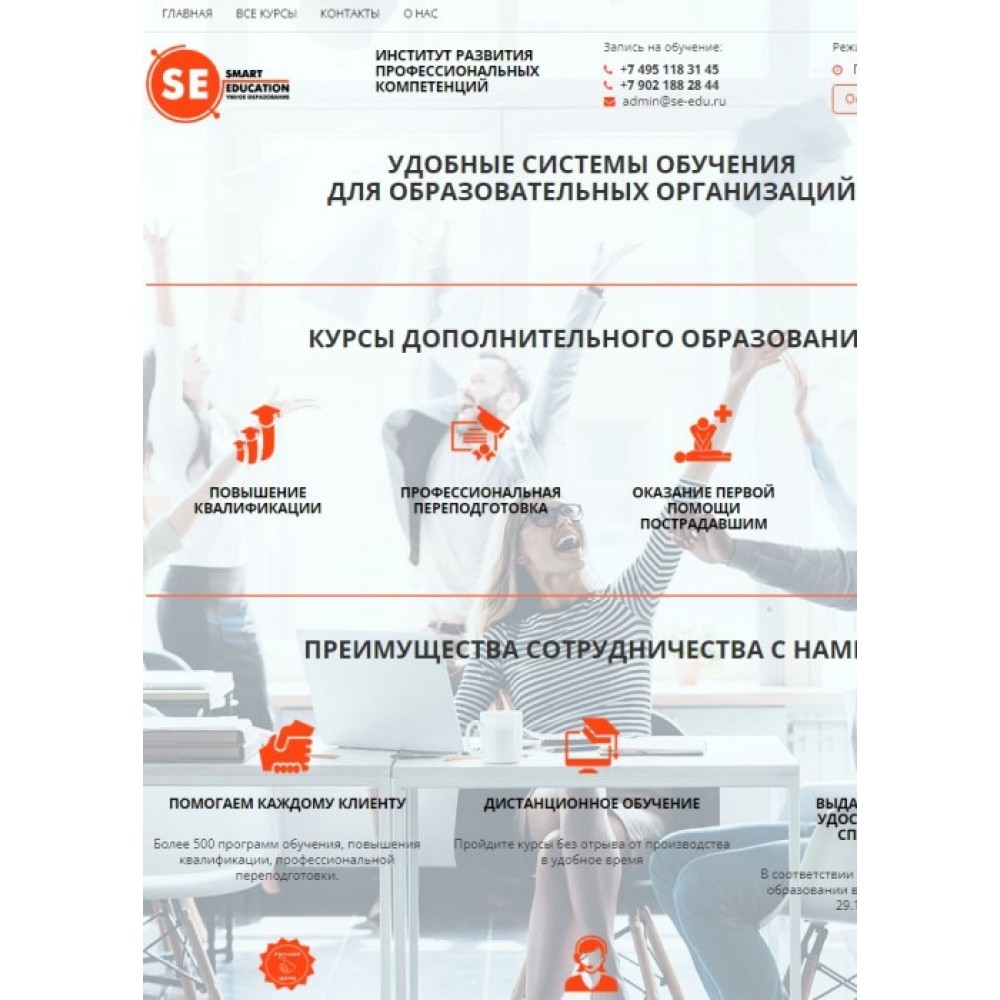 Мы также предлагаем услуги по оптимизации и продвижению сайта, чтобы ваш сайт был виден в поисковых системах и привлекал больше посетителей. Обратитесь к нам сегодня, и мы с удовольствием поможем вам разработать сайт, который станет вашей визитной карточкой и поможет вам достичь новых высот в образовательной сфере.